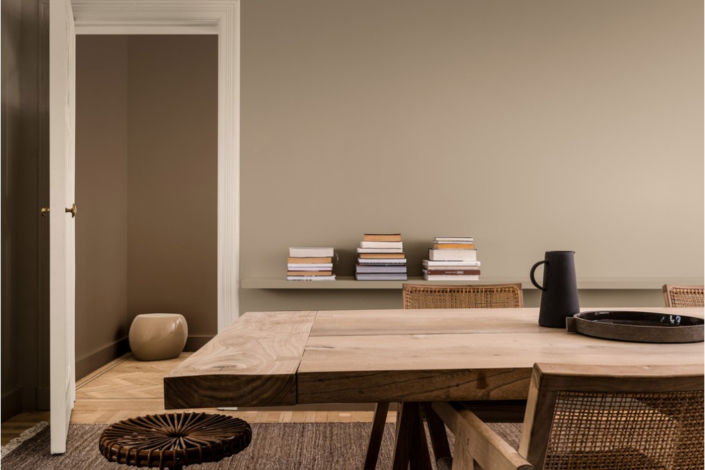 Florile clasice revin ca ornamente pe tapete, dar și pe tavan. Modelele florale mici, oarecum tradiționale, precum iasomia, ne readuc la natură și ne fac să ne simțim protejați. Pentru o cameră de zi modernă, tapetul din țesătură organică este alegerea perfectă, mai ales atunci când este asociat cu lucrări din lemn mai închise la culoare.